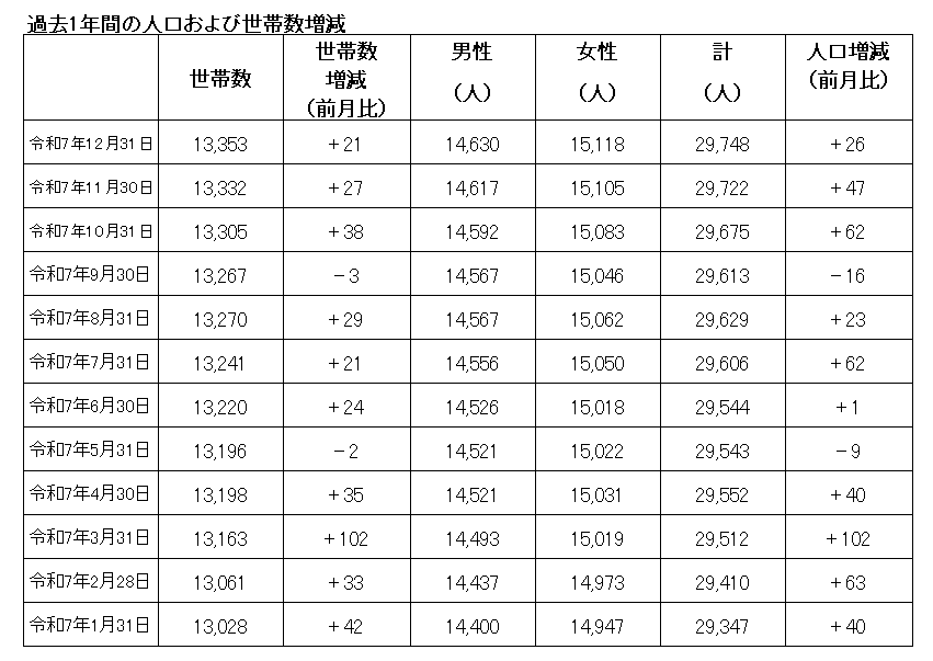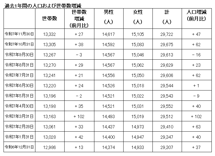 | 世帯数 | 男性(人) | 女性(人) | 人口(人) | |