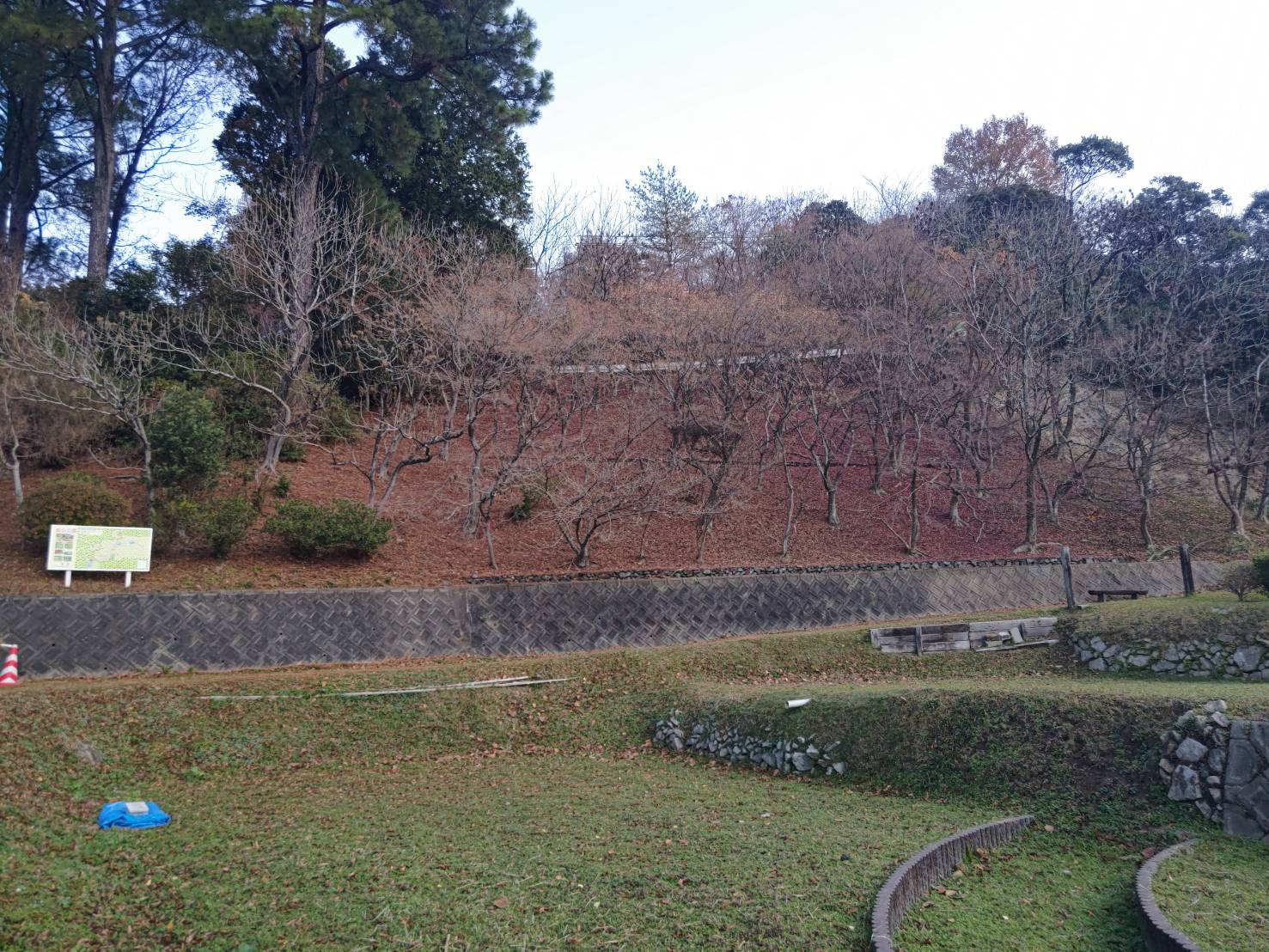 公園内の高いところはまだ緑の葉が多く、寒さで葉が落ちてしまっているところも多くみられました。