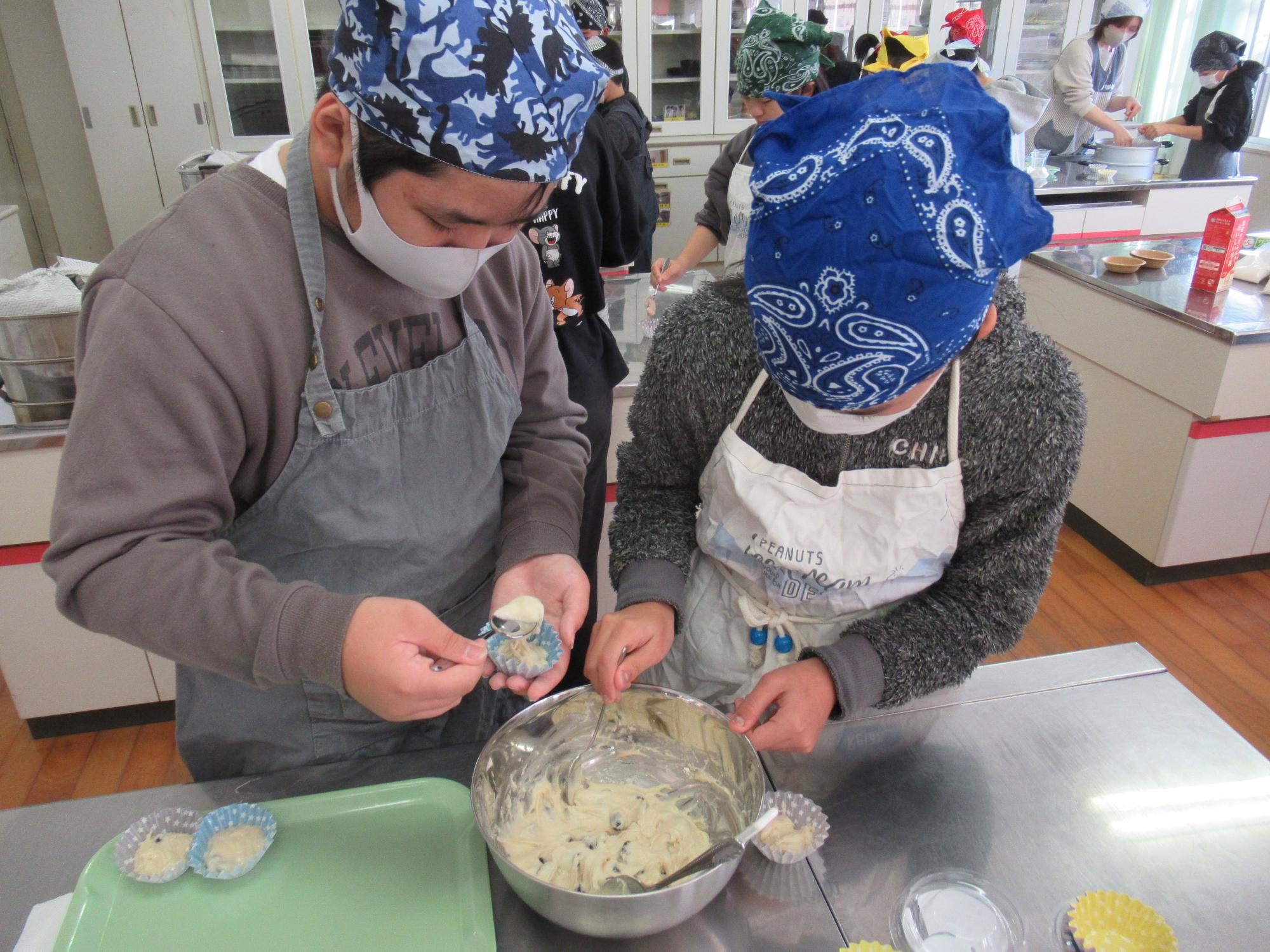 ぺったんフェアの出店・販売に続いて、今回は「蒸しパン作り」をしました。分量を正確に測り、渡す相手のことを考えながら手分けして調理しました。子供達はこれまでの経験をもとに手際よく活動していて、頼もしく感じました。