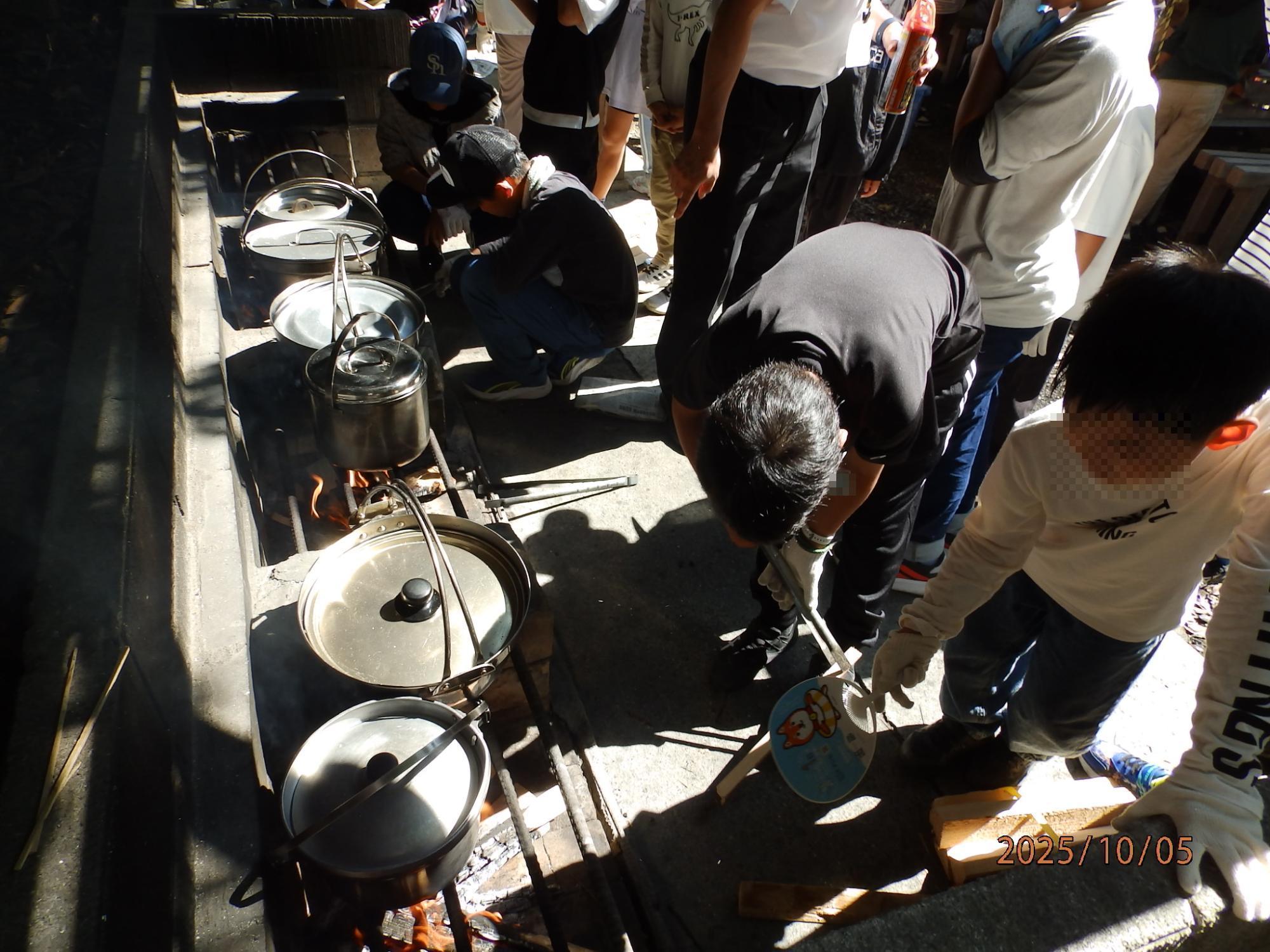 毎年、おやじの会のみなさんが計画して、希望する4年生が参加することができます。今年は、約80名の子どもたちが参加し楽しく活動していました。かまどで米をを炊くことは普段ではできない体験活動です。